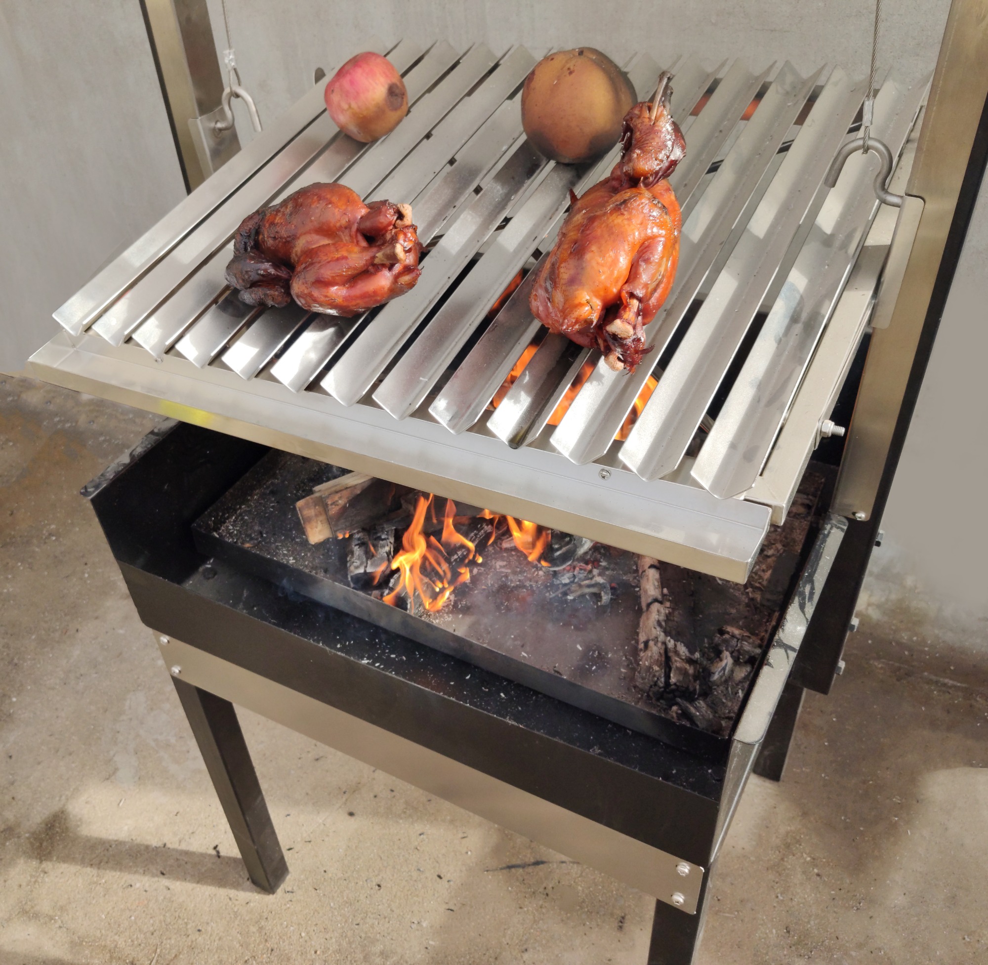 | Adjustable Grill Height with cable wire,Ratchet Crank and Round wheel for easy height adjustment. | |||