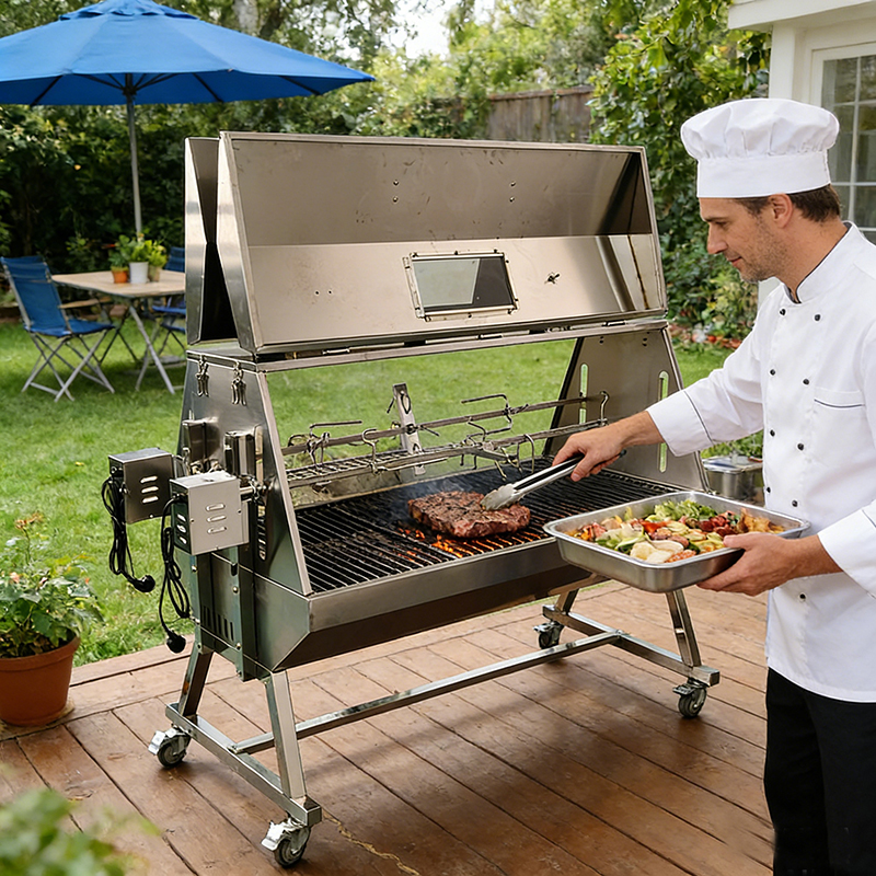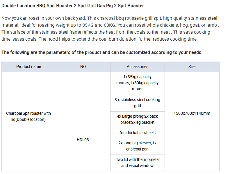 Double Location BBQ Spit Roaster Two Spit Grill Gas And Charcoal Pig Two Spit Roaster