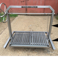Our Stainless Steel Argentine Style Grills and Grill Kits are equipped with an adjustable height, sloped V Grate With Drip Pan cooking surface. The adjustable height of the Argentine Grill cooking surface allows precise temperature control of the grillin